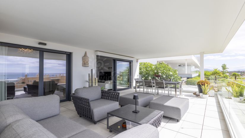 Te presentamos este precioso apartamento de 3 dormitorios en planta baja, esquina, situado en la codiciada zona de Doña Julia, con vistas panorámicas al mar y fantásticas comodidades de estilo resort.